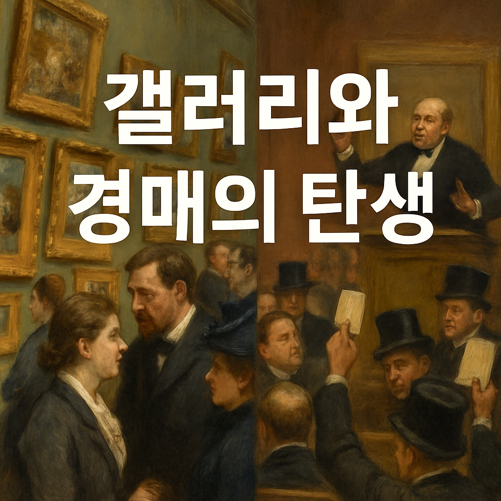 19세기 들어 근대서양미술사는 단순한 예술사조의 변화뿐만 아니라, 미술작품이 상품으로 거래되는 시장 구조의 형성이라는 측면에서도 혁명적인 시대였다. 대중화된 갤러리와 경매 시스템이 등장하면서, 예술가, 갤러리, 수집가, 그리고 경매사가 얽힌 새로운 생태계가 만들어졌다.